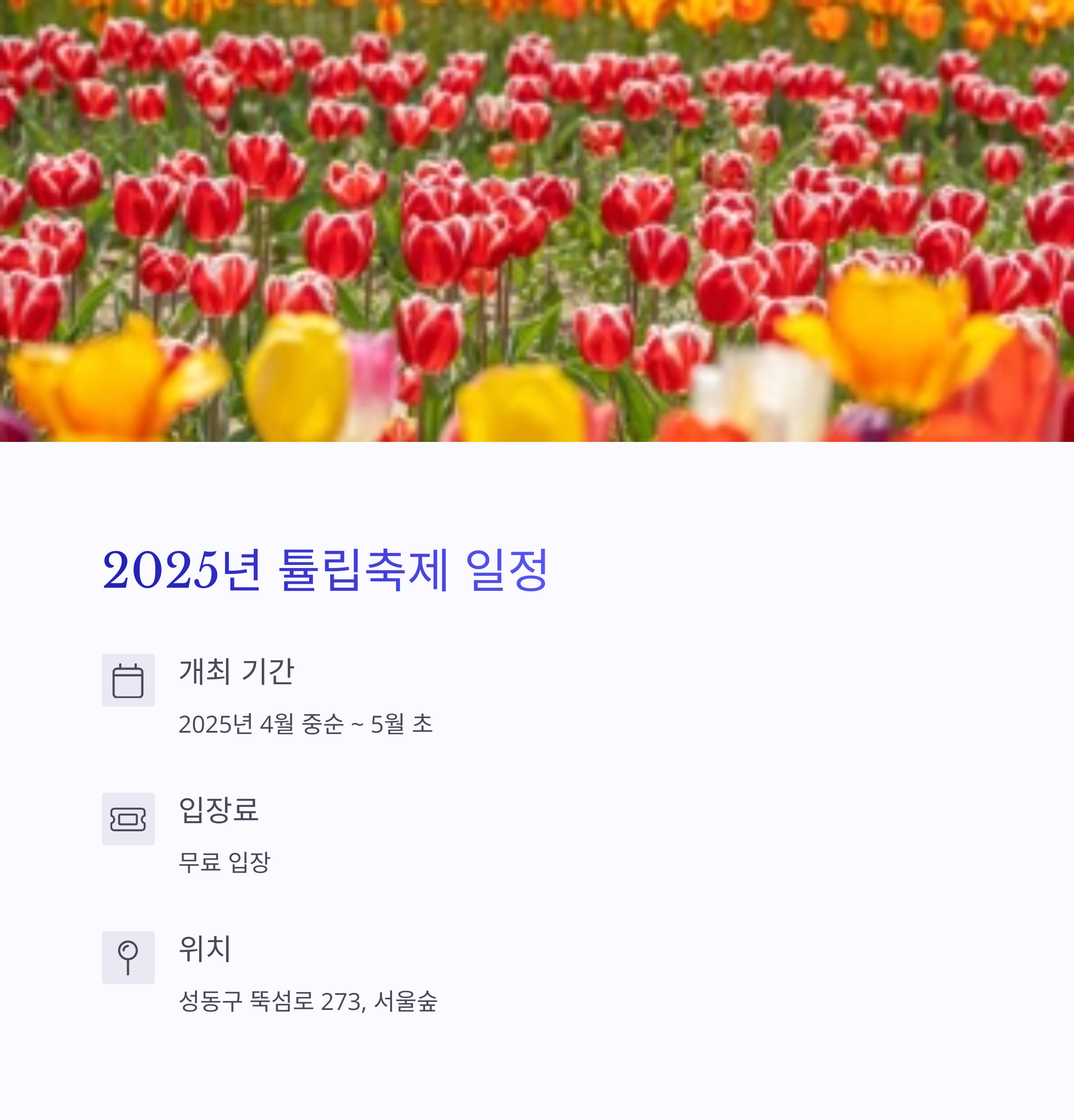 서울숲 튤립 축제 일정 - 2025년 꽃길은 언제 열릴까?