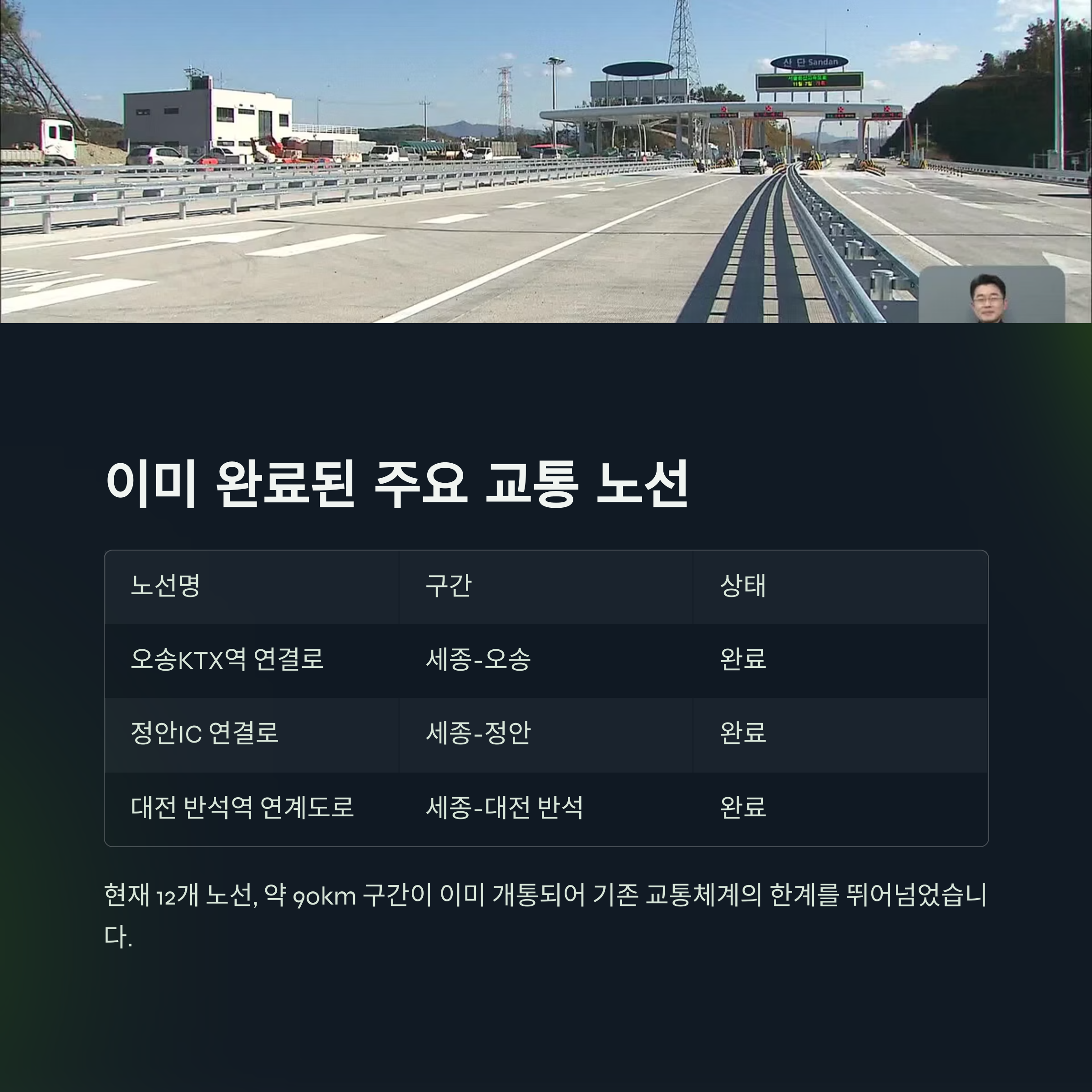 | 오송KTX역 연결로 | 세종-오송 | 완료 |