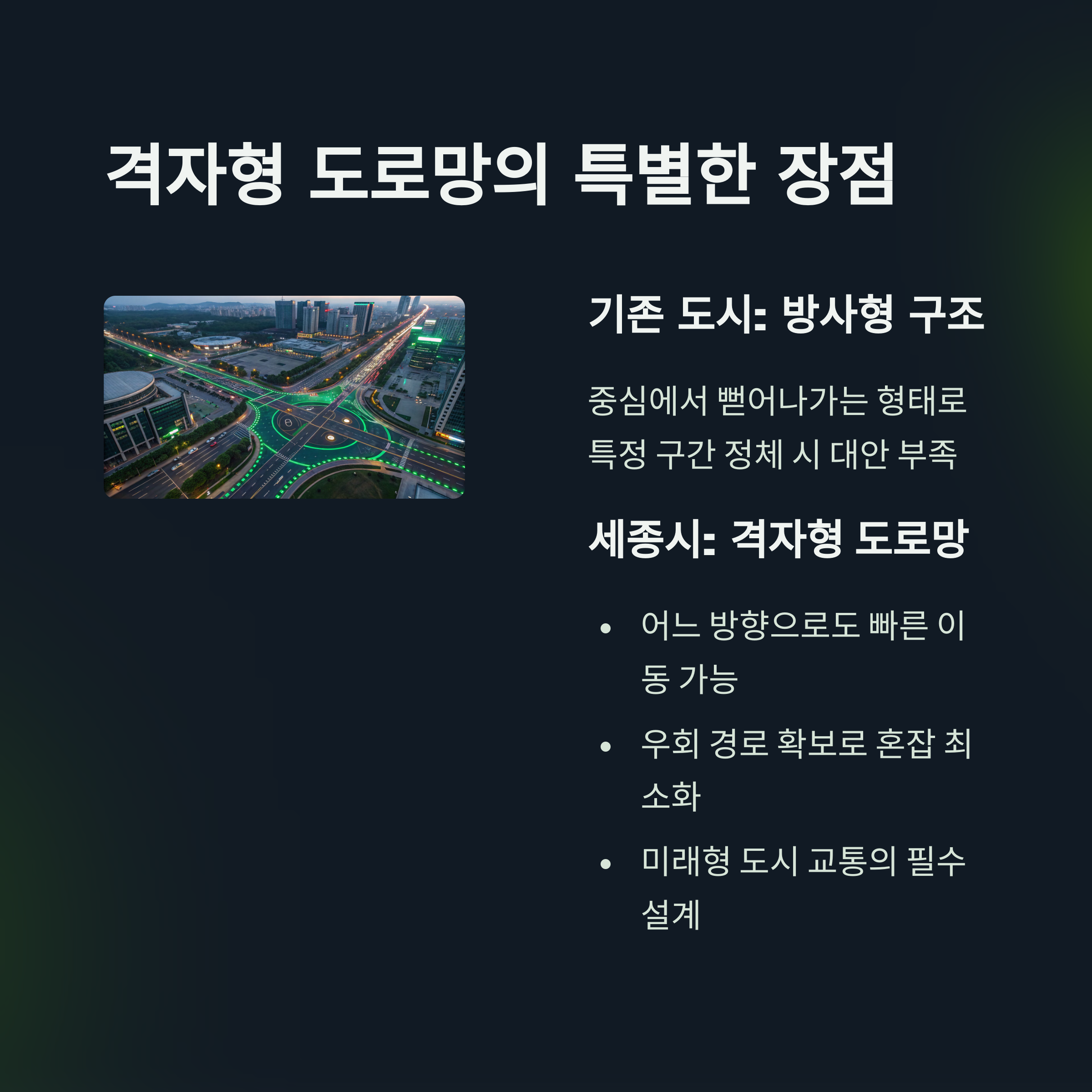 "격자형은 미래형 도시 교통의 필수 설계입니다."