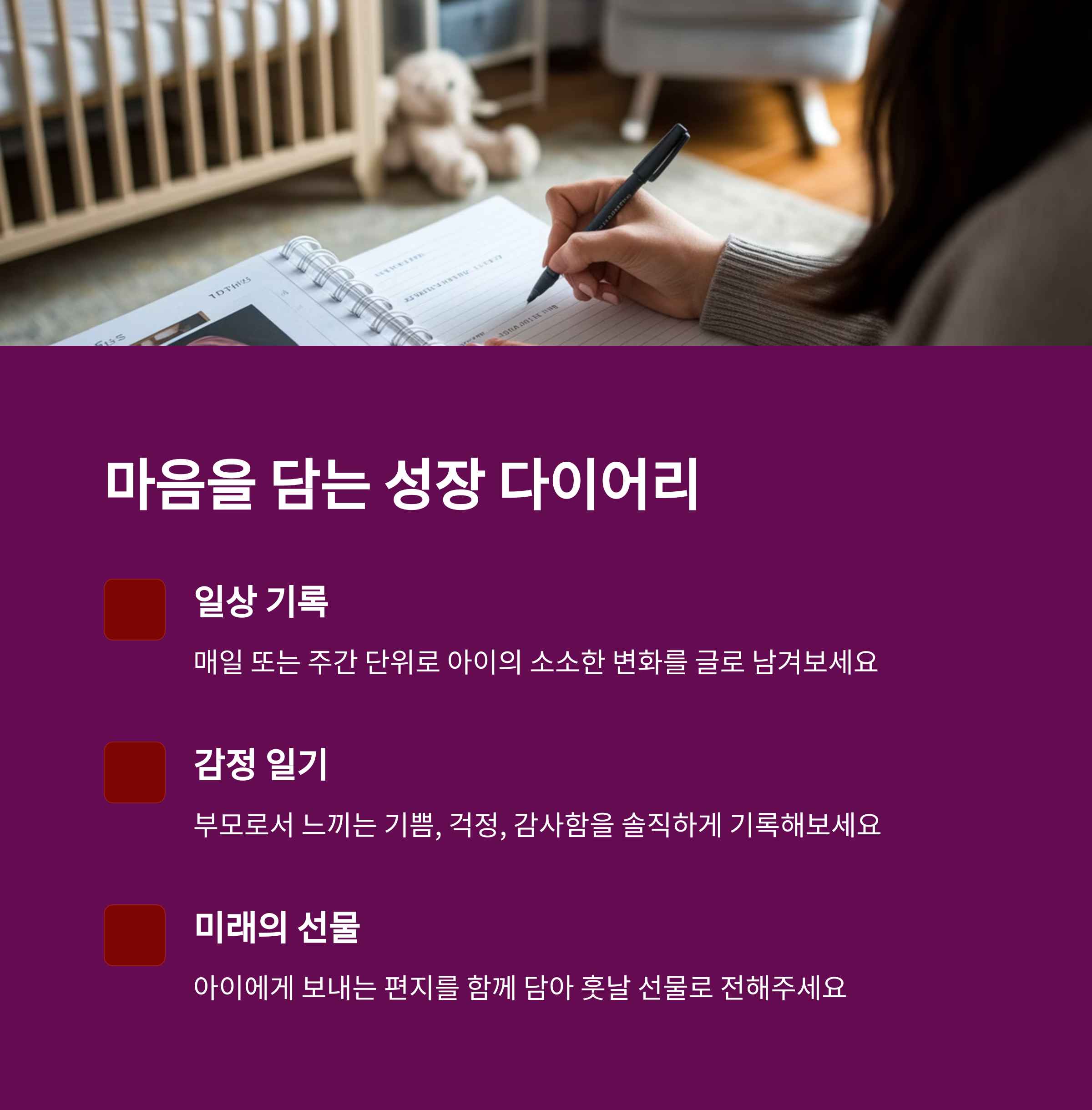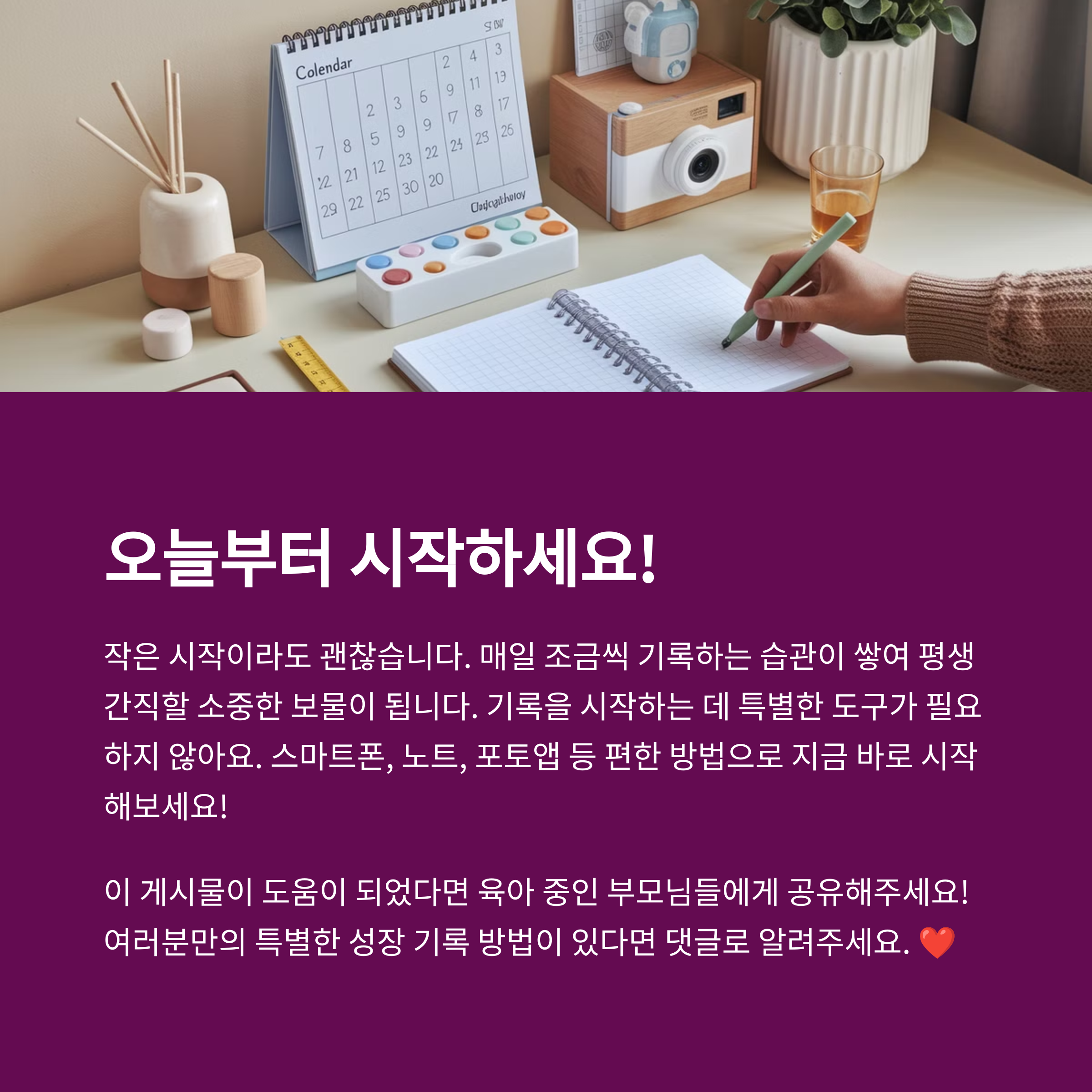 아이의 성장 기록을 남기며 유용했던 방법이나 소중한 추억이 있다면 댓글로 공유해주세요. 다른 부모님들에게 큰 도움이 됩니다.