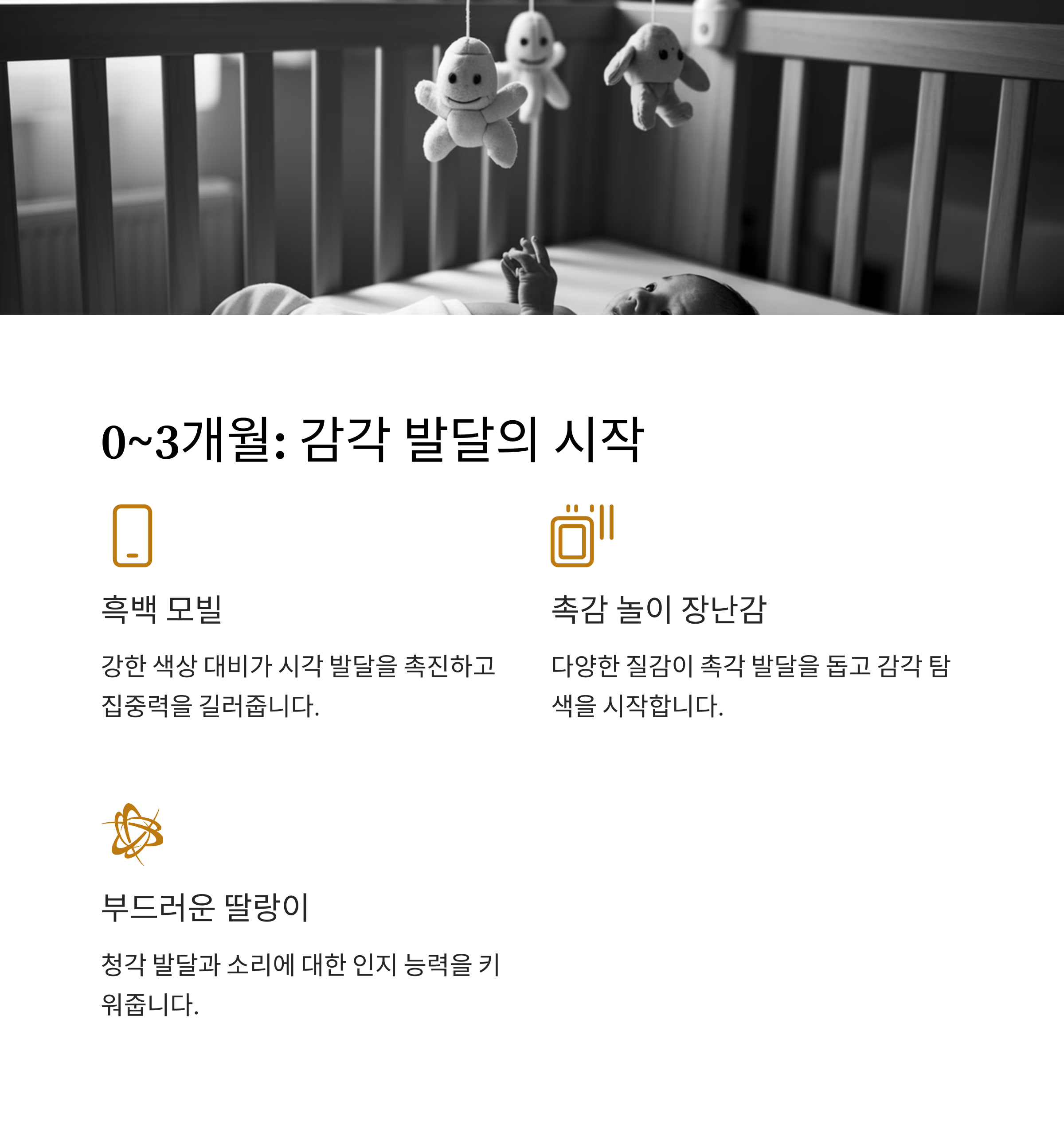 | 신생아 (0~3개월) | 촉감 놀이 장난감, 흑백 모빌 |