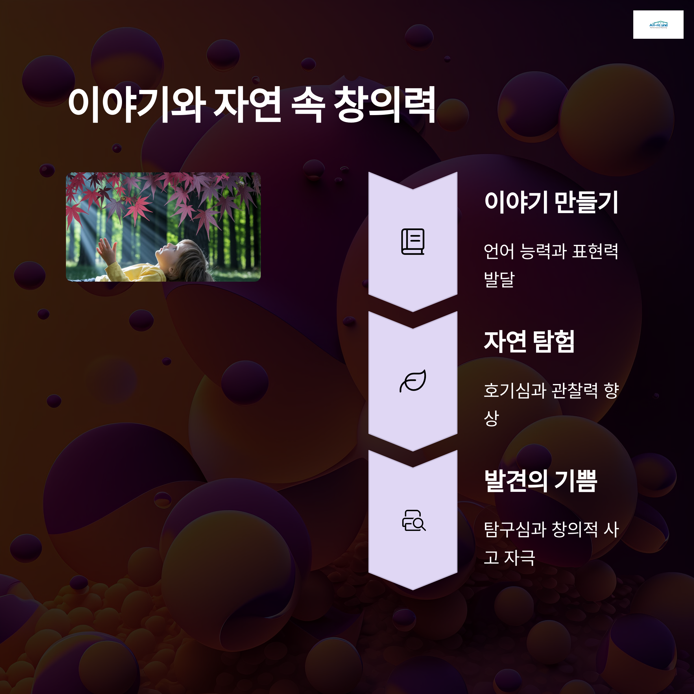 블록 놀이, 이야기 만들기, 자연 탐험도 아이의 창의성을 키우는 좋은 놀이입니다. 블록은 공간지각력과 창의력을, 이야기 만들기는 논리적 사고와 언어 능력을 키워줍니다. 자연 속에서 다양한 사물을 관찰하며 탐구심과 상상력을 자극할 수 있습니다.