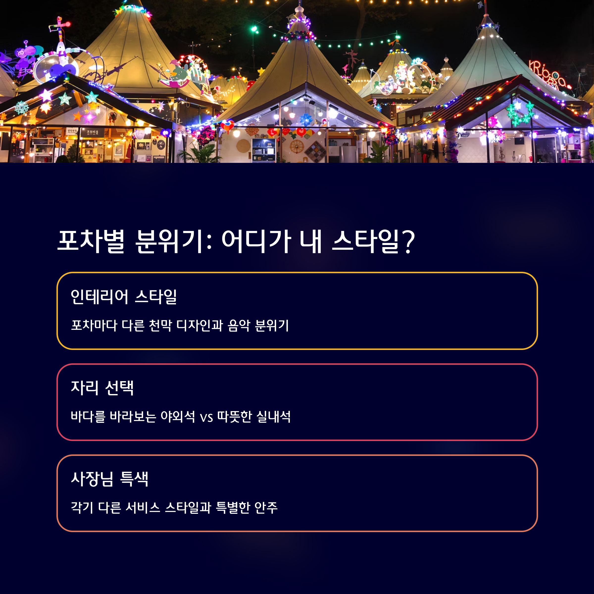 포차마다 분위기가 다르다? 어디가 나에게 맞을까요?