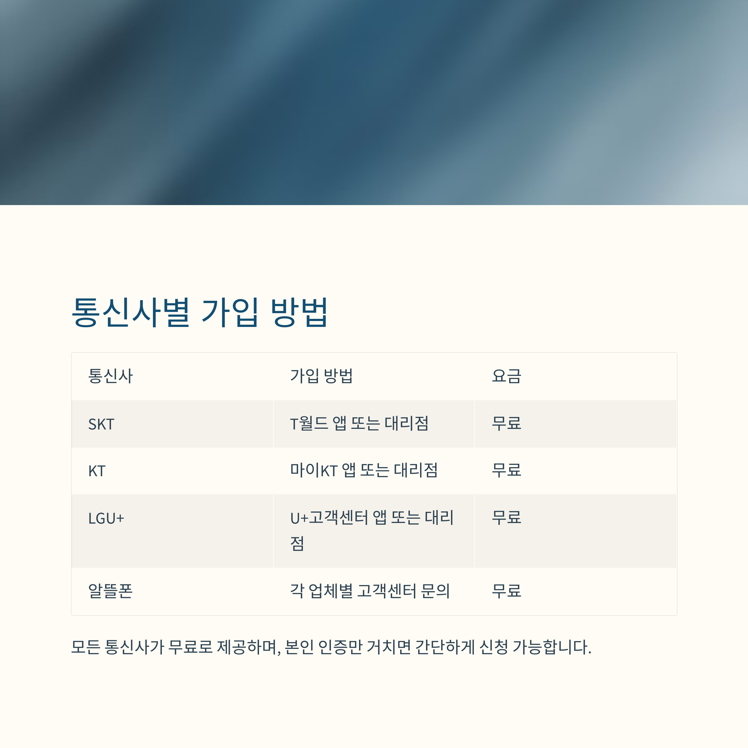 | SKT | T월드 앱 또는 대리점 방문 | 무료 |