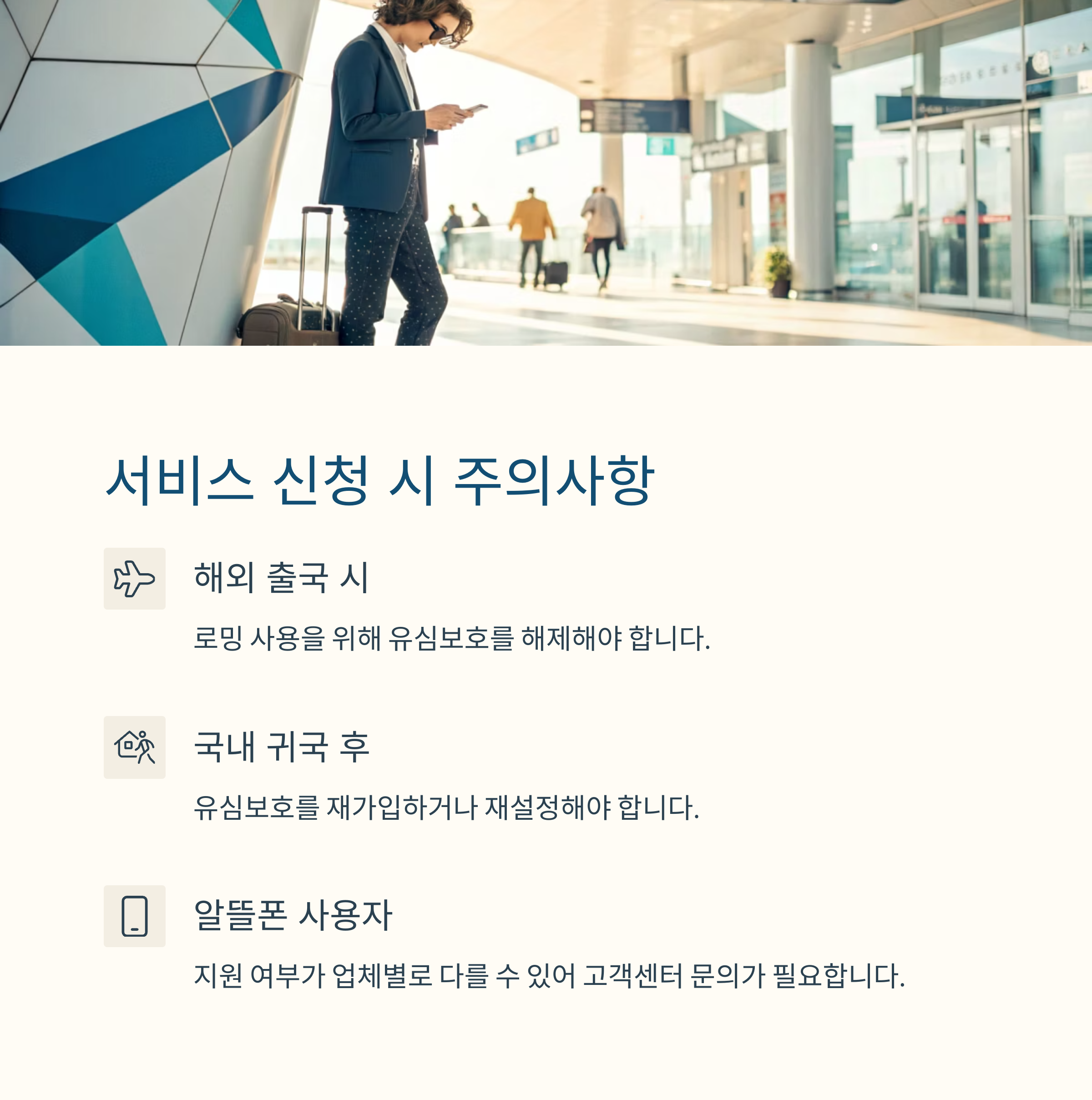 로밍 사용을 위해 유심보호를 해제해야 합니다. - 다시 국내로 돌아오면