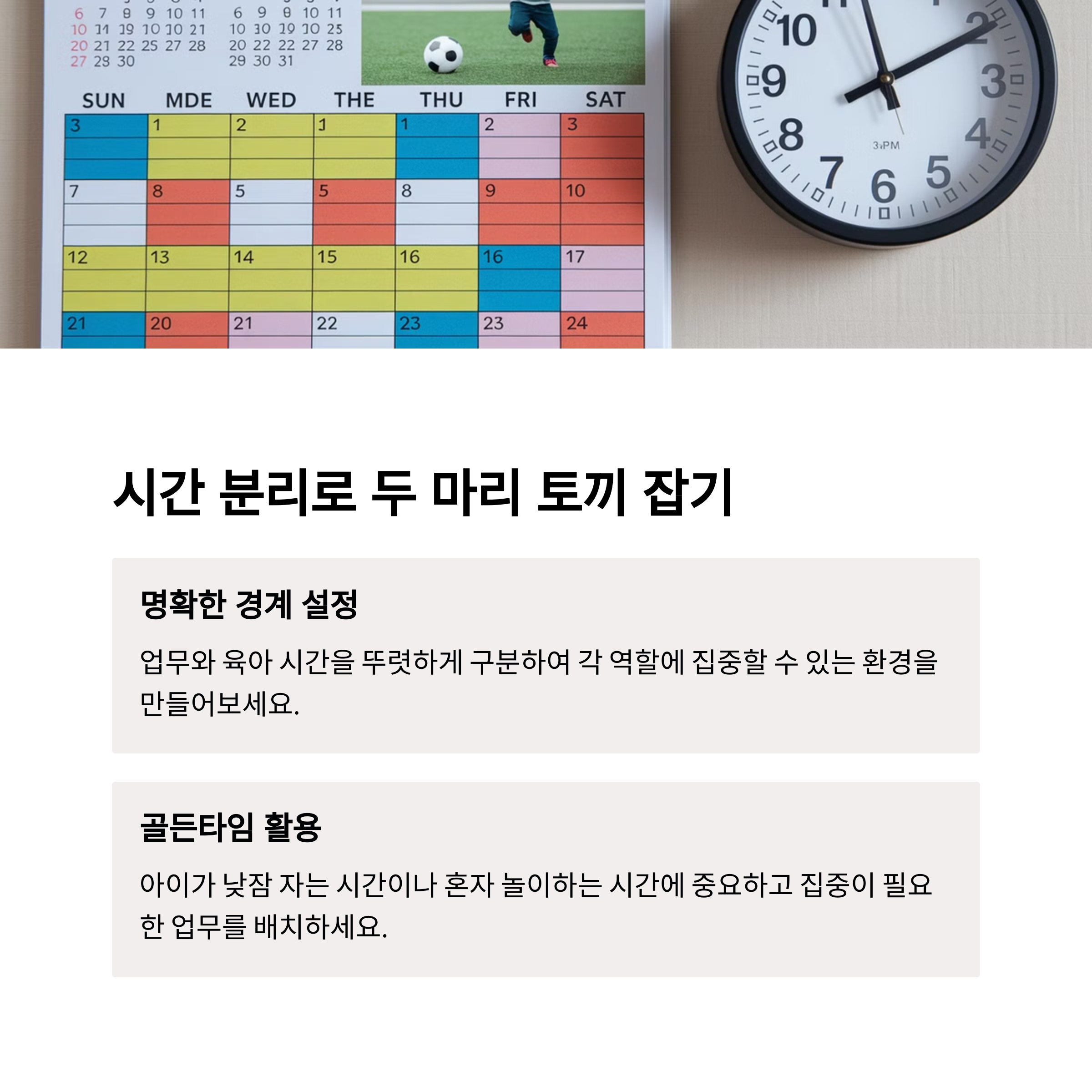 | 기본 전략 | 업무와 육아 시간 분리, 환경 정비 |