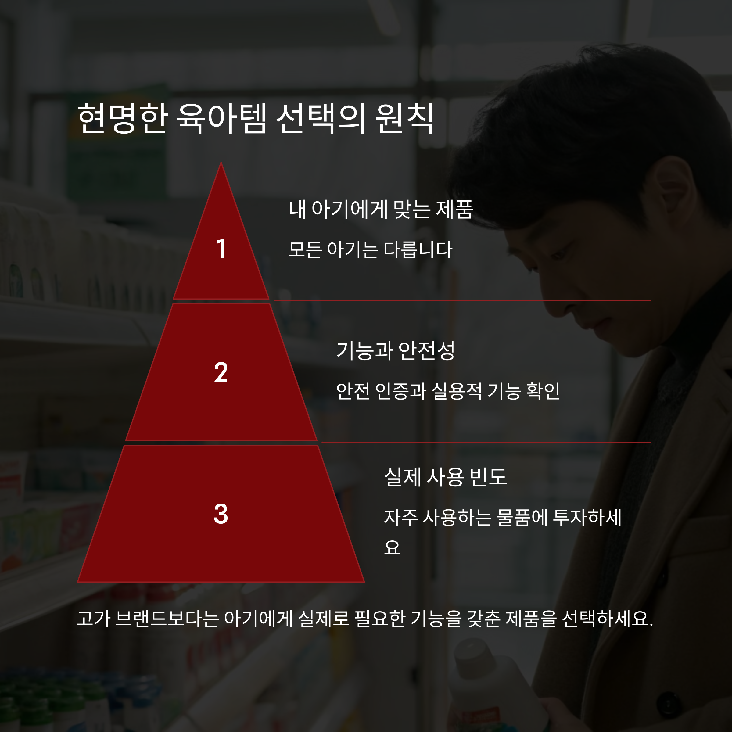 처음 육아를 시작하는 부모에게 수많은 육아용품은 고민의 연속입니다. 무엇이 정말 필요한지, 어떤 것은 후회 없이 오래 쓸 수 있는지 알고 싶다면, 꼭 필요한 아이템만 뽑아 정리한 리스트를 참고해보세요.
