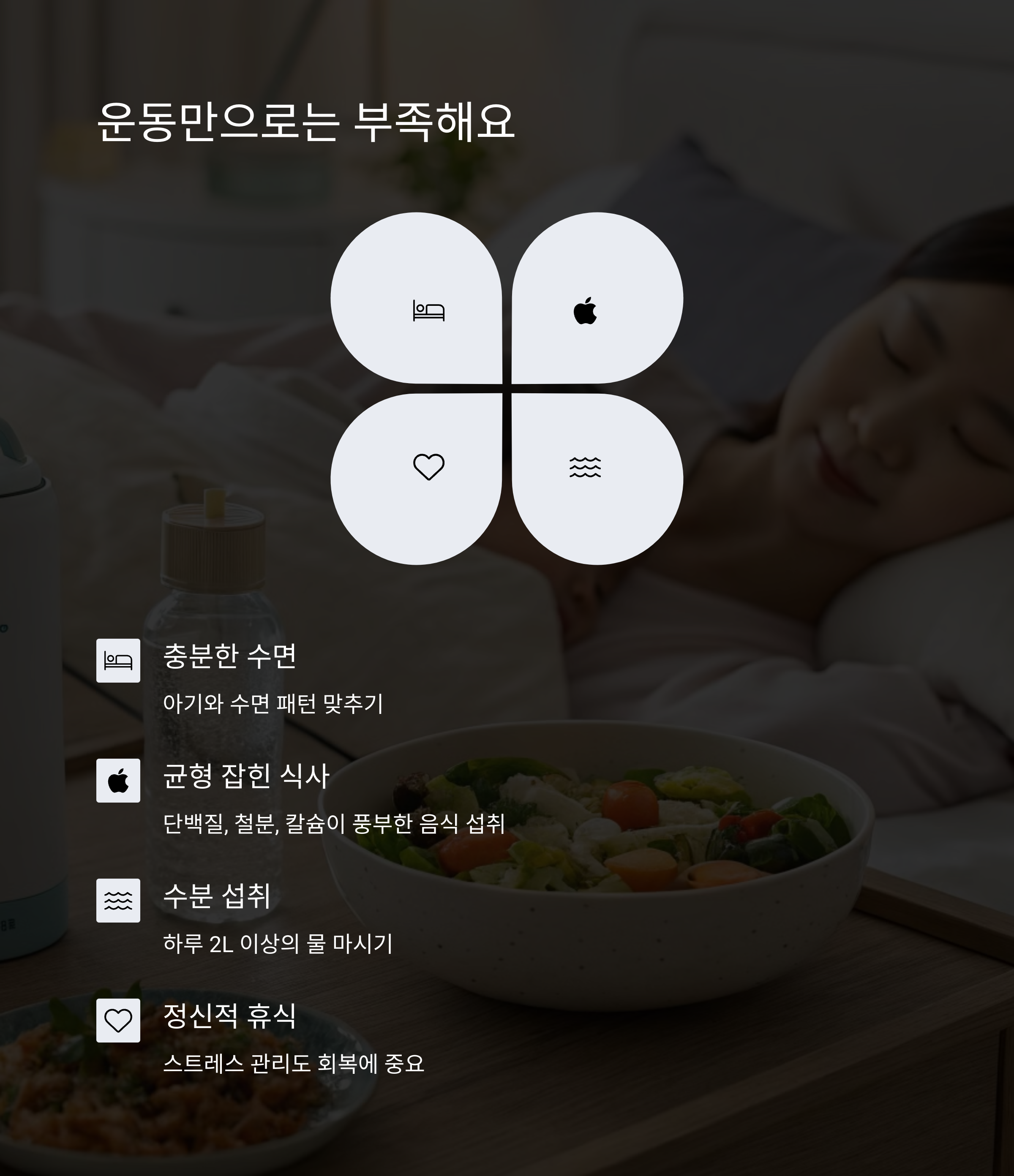 | 하루 5분씩 천천히 반복하세요. | 앉거나 누운 자세에서 조여주고 풀어주는 동작 반복 | 회복 중심의 운동 계획을 세우는 것이 중요합니다. |