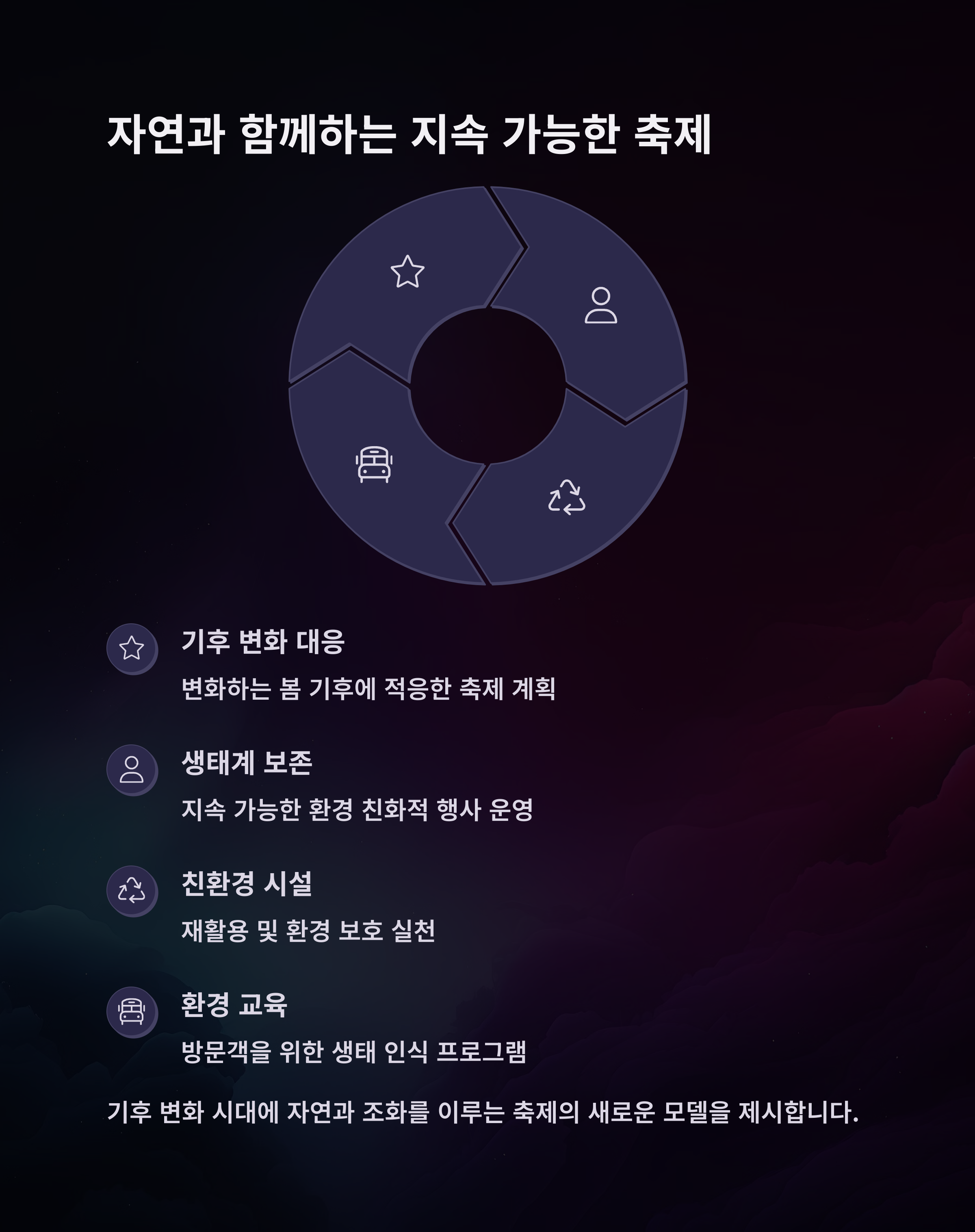 축제의 주제는 ‘고향의 봄’으로, 고향의 향수를 자극하는 꽃밭의 아름다움을 강조합니다.