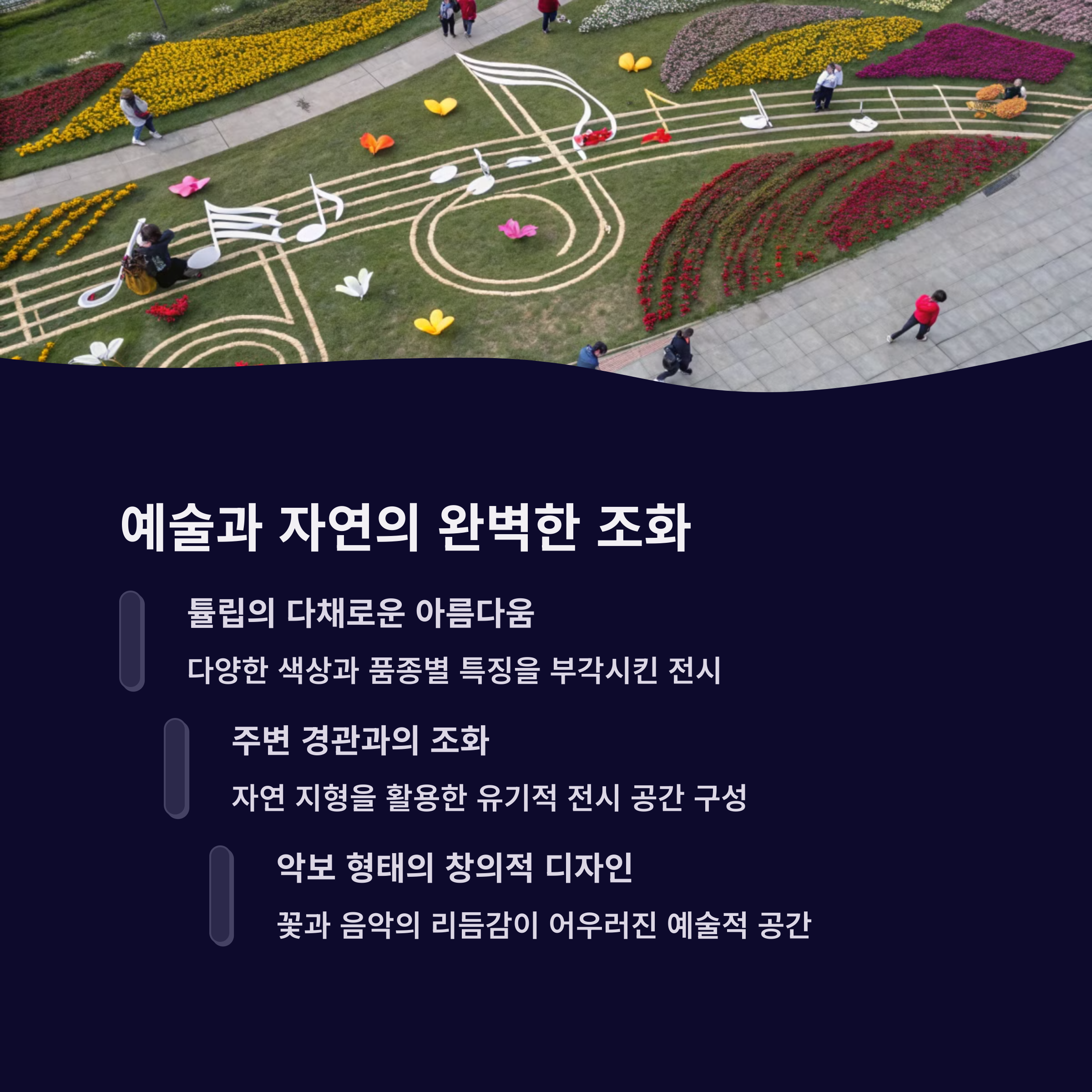 2024년에는 월드 튤립 디자인상을 수상하며 전시 품질과 디자인 면에서 글로벌 기준에 부합함을 입증했습니다.