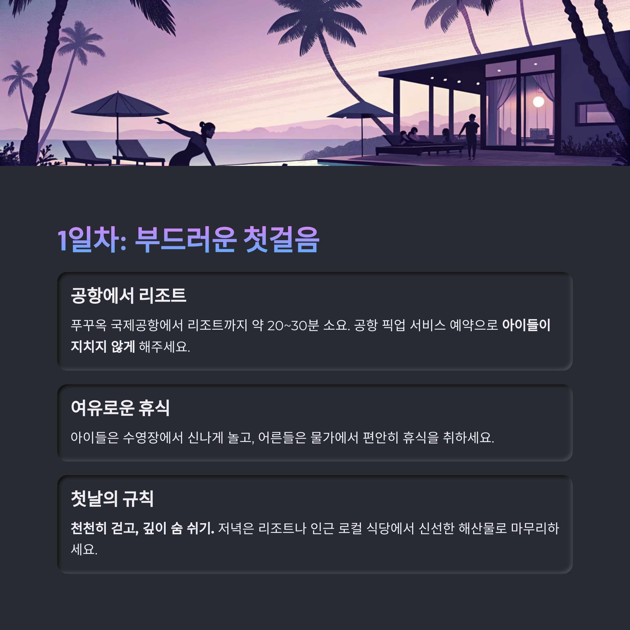 1일차: 공항에서 리조트까지, 가족을 위한 부드러운 첫걸음